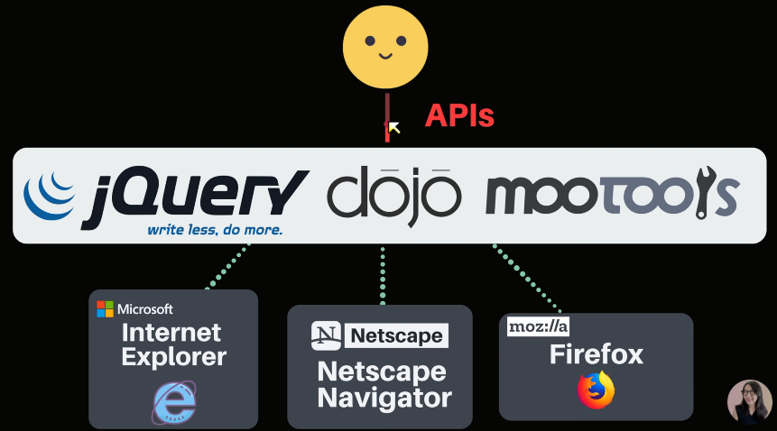 ๋ธ๋ผ์ฐ์ ์ ์๊ด์์ด ๊ธฐ๋ฅํ๋ ์น ํ์ด์ง๋ฅผ ๋ง๋ค๊ฒ ๋์์ฃผ๋ jQuery์ ๊ฐ์ API๊ฐ ์ฑํํ๋ค.