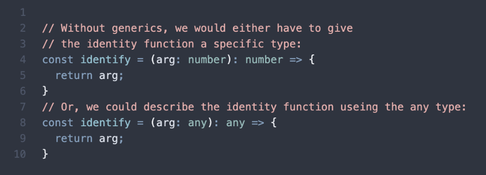 1) ํ์ ์ ๋ฏธ๋ฆฌ ์ง์ ํ๊ฑฐ๋, 2) any๋ฅผ ์ด์ฉํ์ฌ ๊ตฌํํด์ผ ํ๋ค.