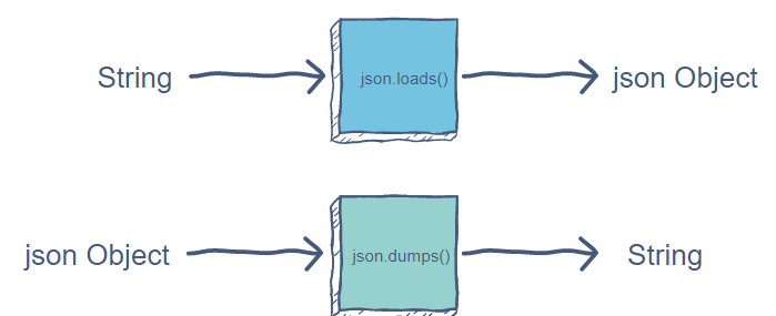 json.loads(string): ๋์ ๋๋ฆฌ ๋ฐํ