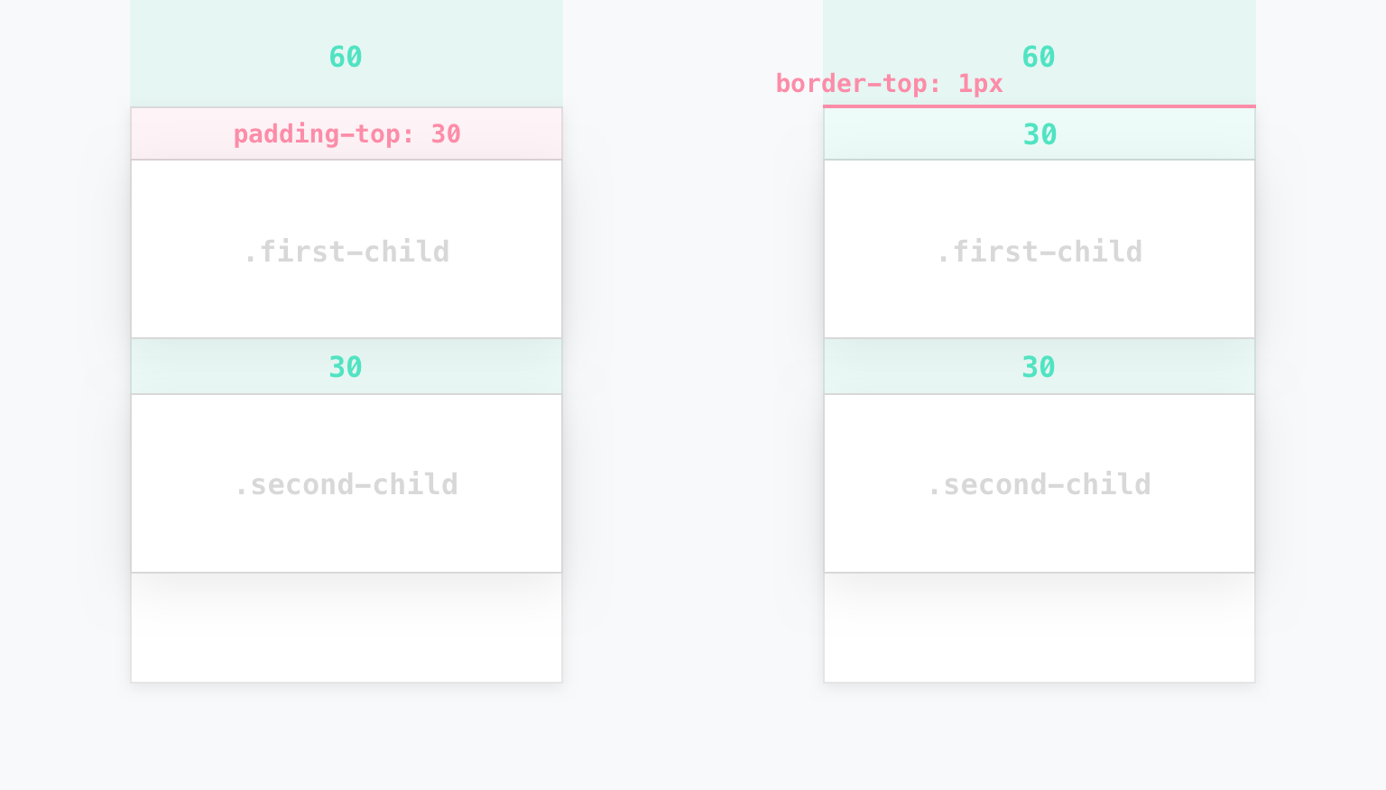 ๋ถ๋ชจ ๋ฐ์ค ์๋จ(ํ๋จ)์ padding ๋๋ border ๊ฐ์ ์ฃผ์ด ๊ฒฝ๊ณ๋ฅผ ๋ง๋ค๋ฉด, ๋ง์ง๊ฒน์นจ ํ์์ด ์ผ์ด๋์ง ์๊ฒ๋๋ค.