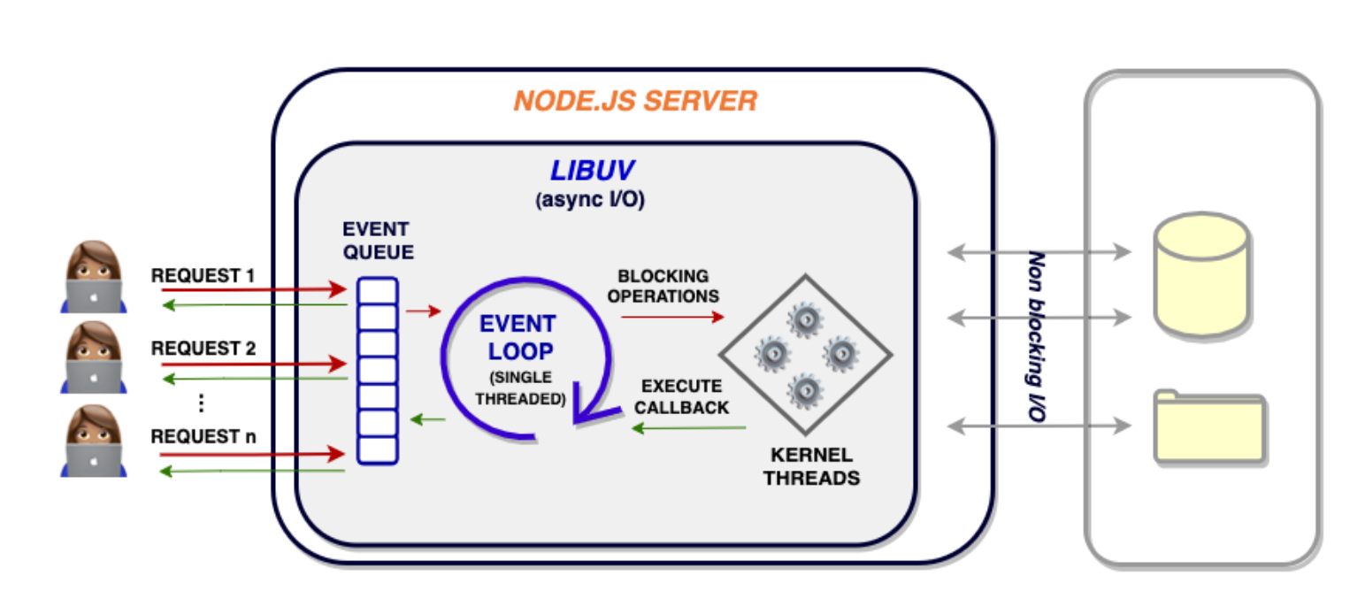1. Node.js์ ์ด๋ฒคํธ ๋ฃจํ์ ๋น๋๊ธฐ ๋ ผ๋ธ๋กํน I/O ๋ชจ๋ธ